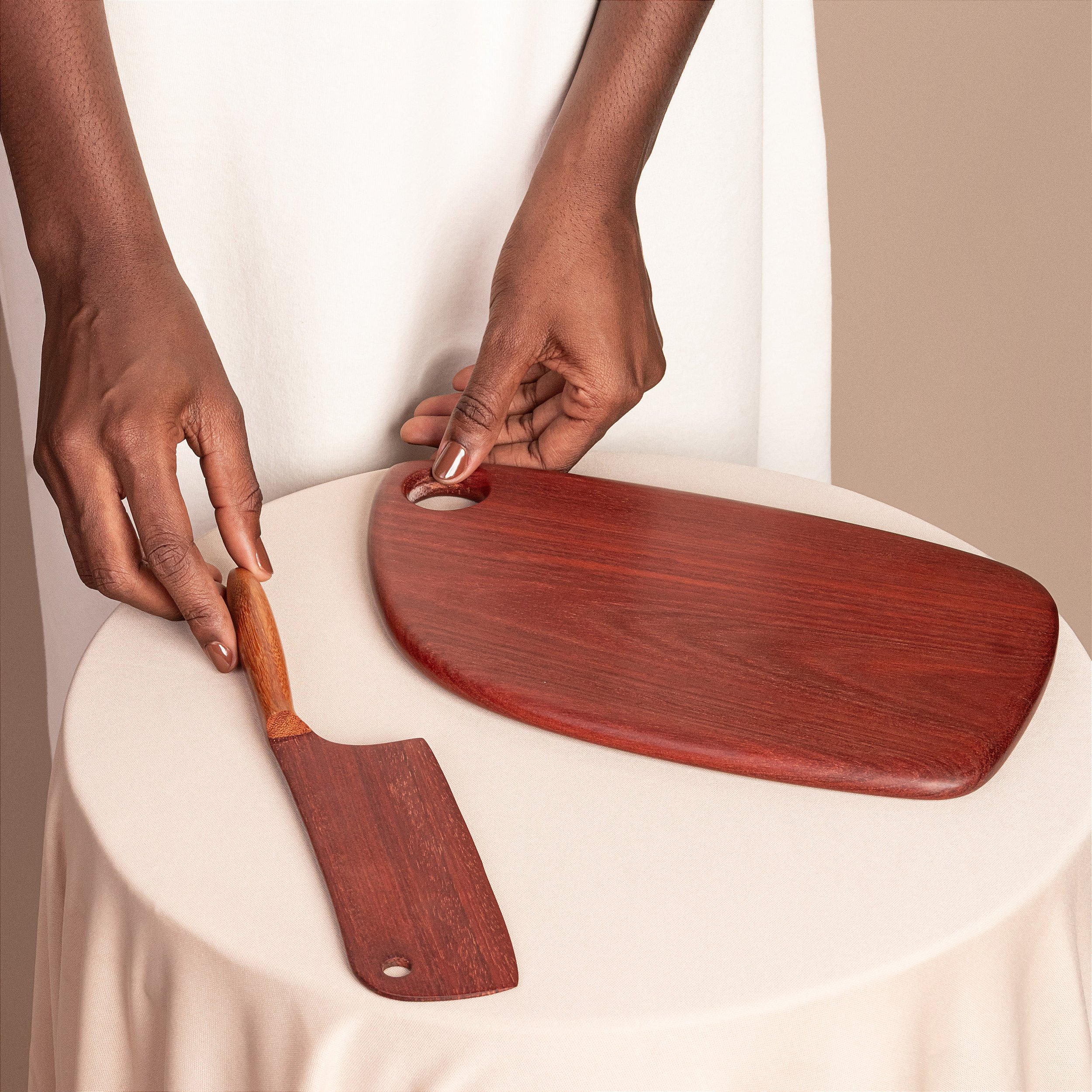 Depois de 6 meses despretensiosos, a madeira finalmente o encontrou. Nunca tinha lhe interessado muito, mas... Aquele galho caído, com um formato que lembrava uma colher... Foi quando Fred resolveu tentar fazer daquilo realmente uma colher, e funcionou! E o melhor, foi prazeroso! Desde então segue fazendo uma peça atrás da outra, enlouquecidamente. Estudou, aprofundou e mergulhou de cabeça no universo das madeiras. Trabalhando preferencialmente com espécies brasileiras nobres, Fred não compra nada. Também não corta, claro. Tudo é fruto de garimpos em descarte de obras e marcenarias, ou mesmo no chão da mata. Todo processo é artesanal e natural. Não utiliza produtos sintéticos, apenas óleos e cera de abelha para finalizar.