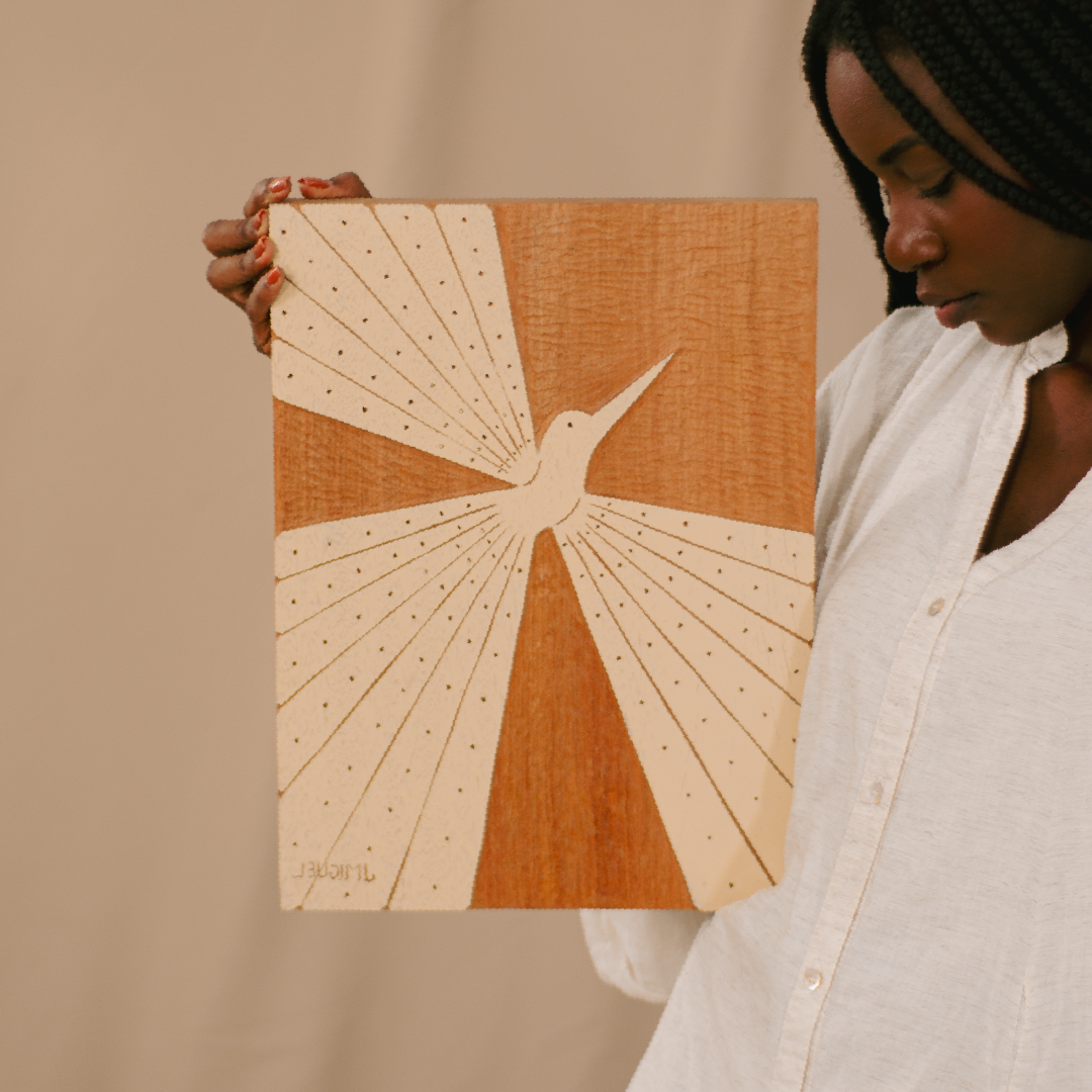 A coleção Colibri é uma homenagem à cultura brasileira pelo traço de J. Miguel e pela visão artística de Leonardo Allouchie. Em cada matriz, gravura e quadro, o beija-flor ganha forma pelas mãos desses dois artistas, trazendo a técnica da xilogravura sob um novo olhar. Com um design atemporal e toda feita à mão, essa coleção representa o encontro do popular com o contemporâneo, criando peças únicas que encantam pela simplicidade e autenticidade.