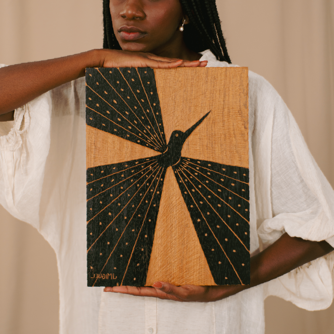 A coleção Colibri é uma homenagem à cultura brasileira pelo traço de J. Miguel e pela visão artística de Leonardo Allouchie. Em cada matriz, gravura e quadro, o beija-flor ganha forma pelas mãos desses dois artistas, trazendo a técnica da xilogravura sob um novo olhar. Com um design atemporal e toda feita à mão, essa coleção representa o encontro do popular com o contemporâneo, criando peças únicas que encantam pela simplicidade e autenticidade.