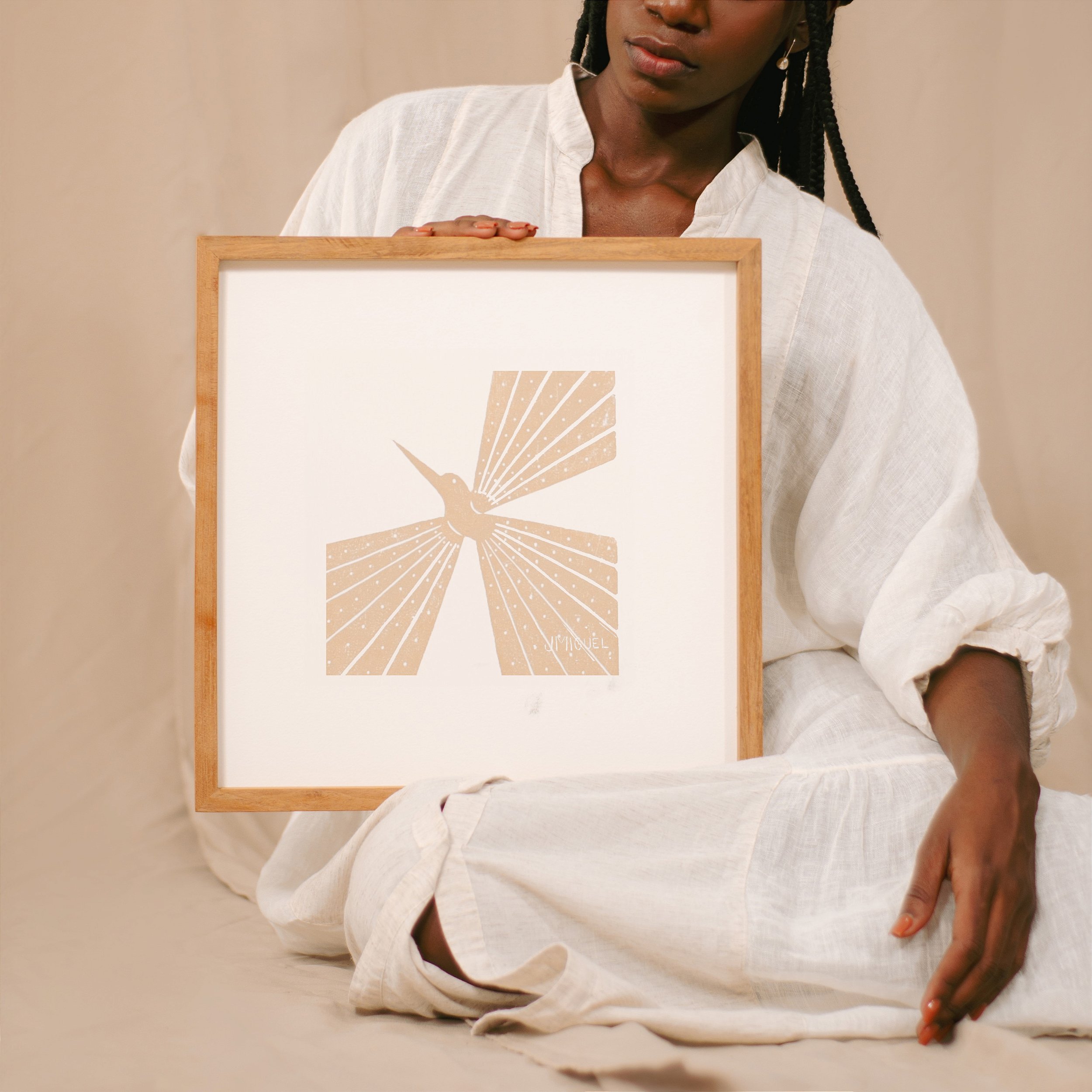 A coleção Colibri é uma homenagem à cultura brasileira pelo traço de J. Miguel e pela visão artística de Leonardo Allouchie. Em cada matriz, gravura e quadro, o beija-flor ganha forma pelas mãos desses dois artistas, trazendo a técnica da xilogravura sob um novo olhar. Com um design atemporal e toda feita à mão, essa coleção representa o encontro do popular com o contemporâneo, criando peças únicas que encantam pela simplicidade e autenticidade.