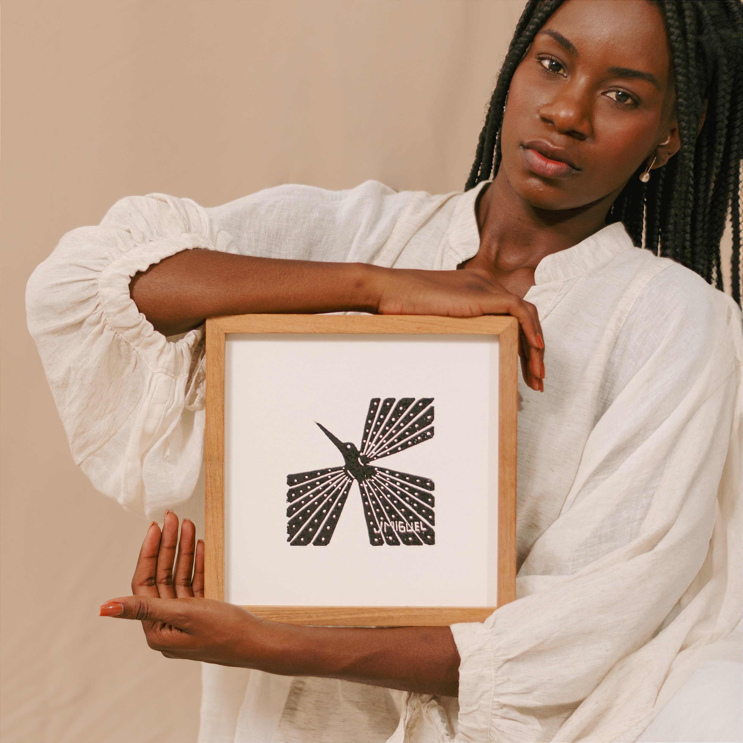 A coleção Colibri é uma homenagem à cultura brasileira pelo traço de J. Miguel e pela visão artística de Leonardo Allouchie. Em cada matriz, gravura e quadro, o beija-flor ganha forma pelas mãos desses dois artistas, trazendo a técnica da xilogravura sob um novo olhar. Com um design atemporal e toda feita à mão, essa coleção representa o encontro do popular com o contemporâneo, criando peças únicas que encantam pela simplicidade e autenticidade.